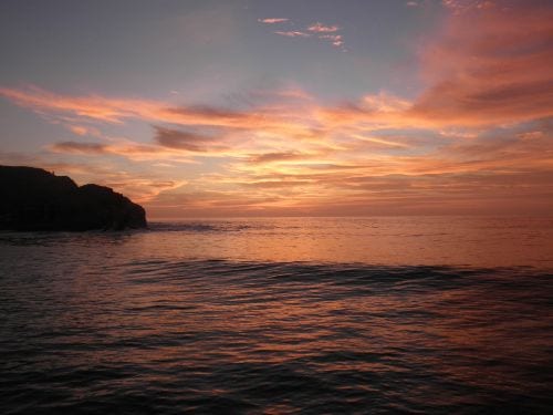 La playa León Dormido recibe su nombre por la presencia de leones marinos en sus atardeceres.